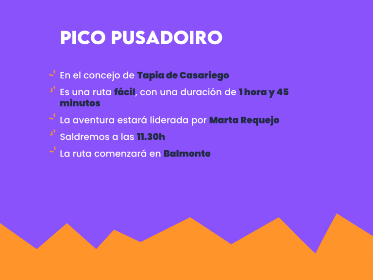 Especificaciones para la RUTA AL PICO POUSADOIRO, en el concejo de Tapia de casariego